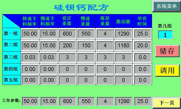 國(guó)內(nèi)大多數(shù)的廠家選用的方式是控制孕育流量(單一的螺旋給料或者螺旋給料加流量計(jì)方式),基本界面如下: